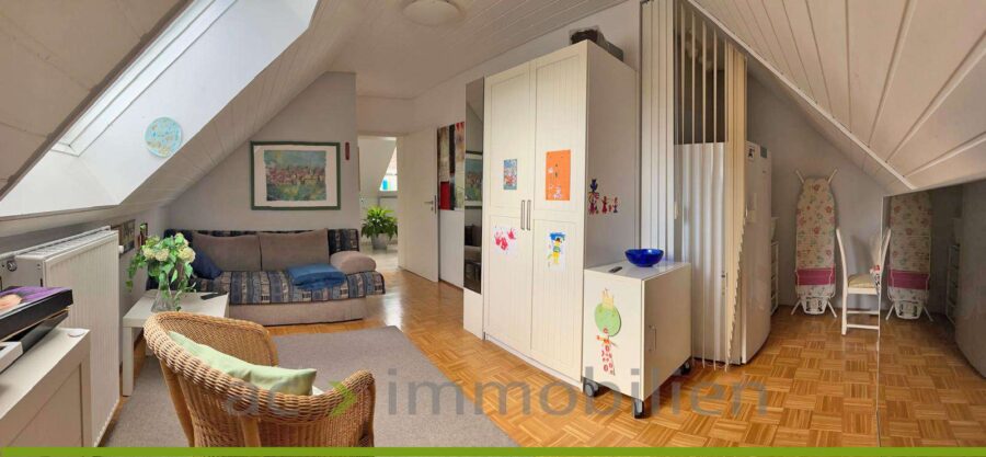 Die Wohnung umfasst 170 m² und überzeugt durch ihre harmonische Raumaufteilung sowie lichtdurchflutete Zimmer, die dank der Gauben besonders einladend wirken. Der überwiegende Teil der Räume ist mit hochwertigem Echtholzparkett ausgestattet, das für ein warmes Wohnambiente sorgt.